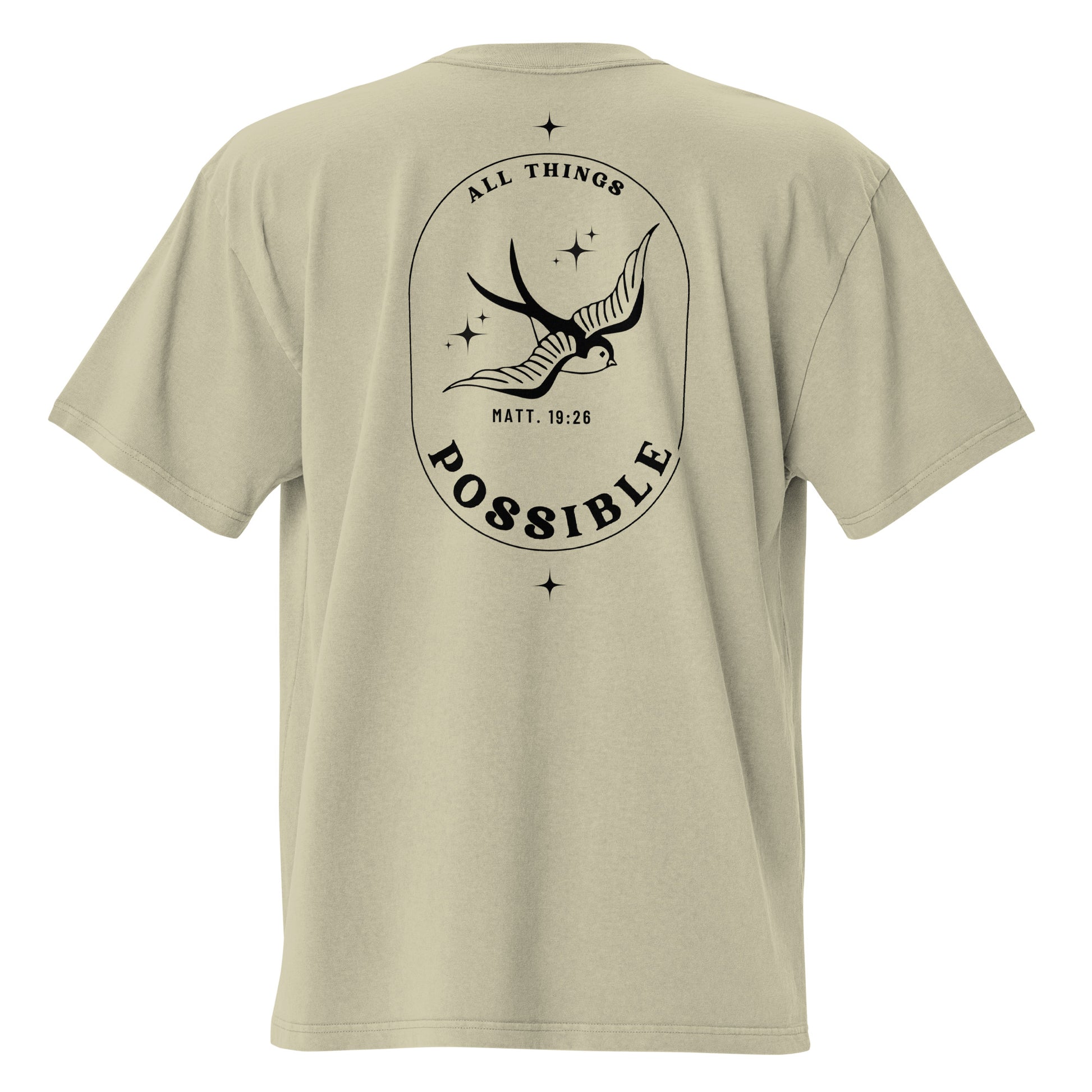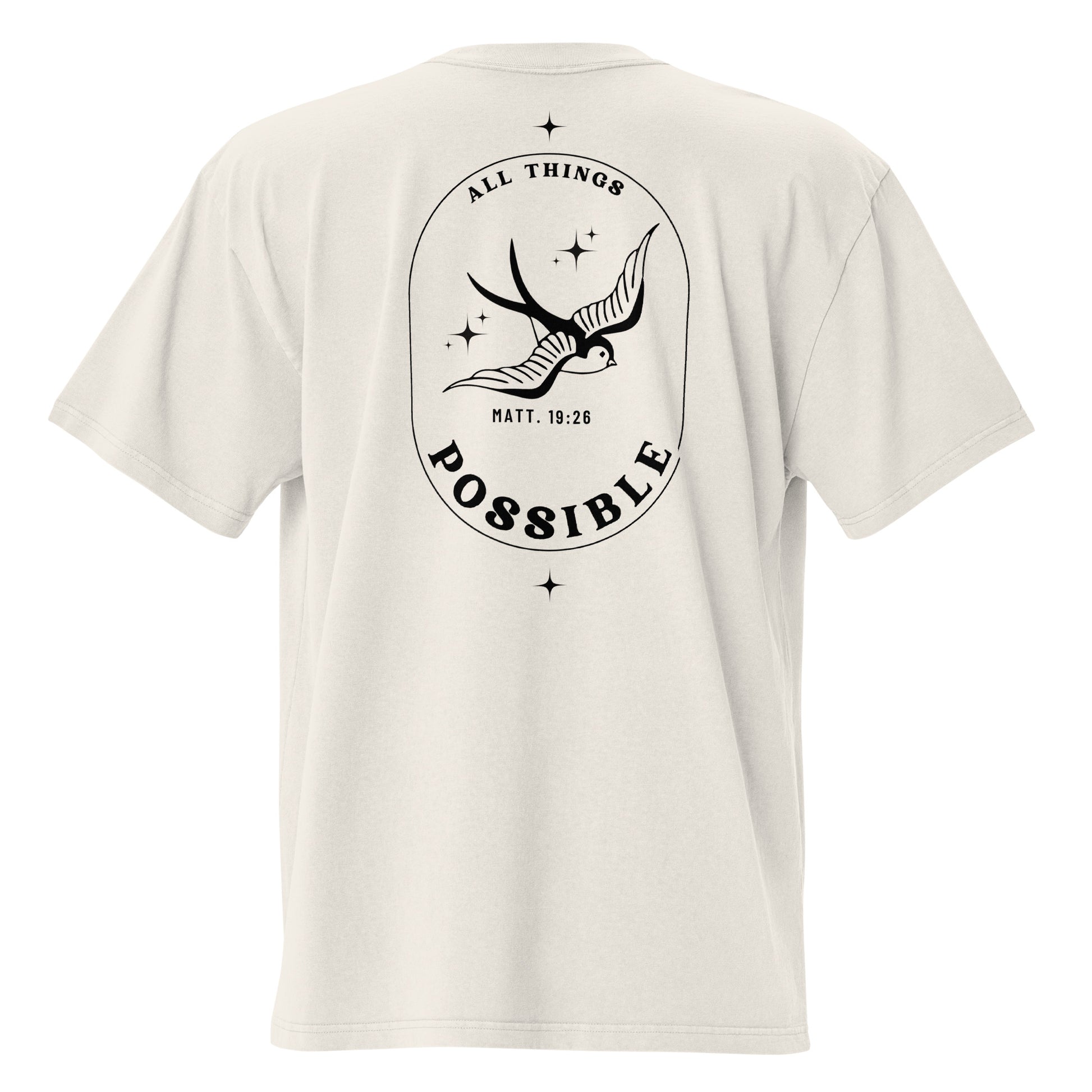 Matthew 19:26 -- Possible -- you're more than capable. Inspired by your day to day efforts inside and outside the gym, this oversized tee is perfect for a dressed down afternoon to town, or pump session.